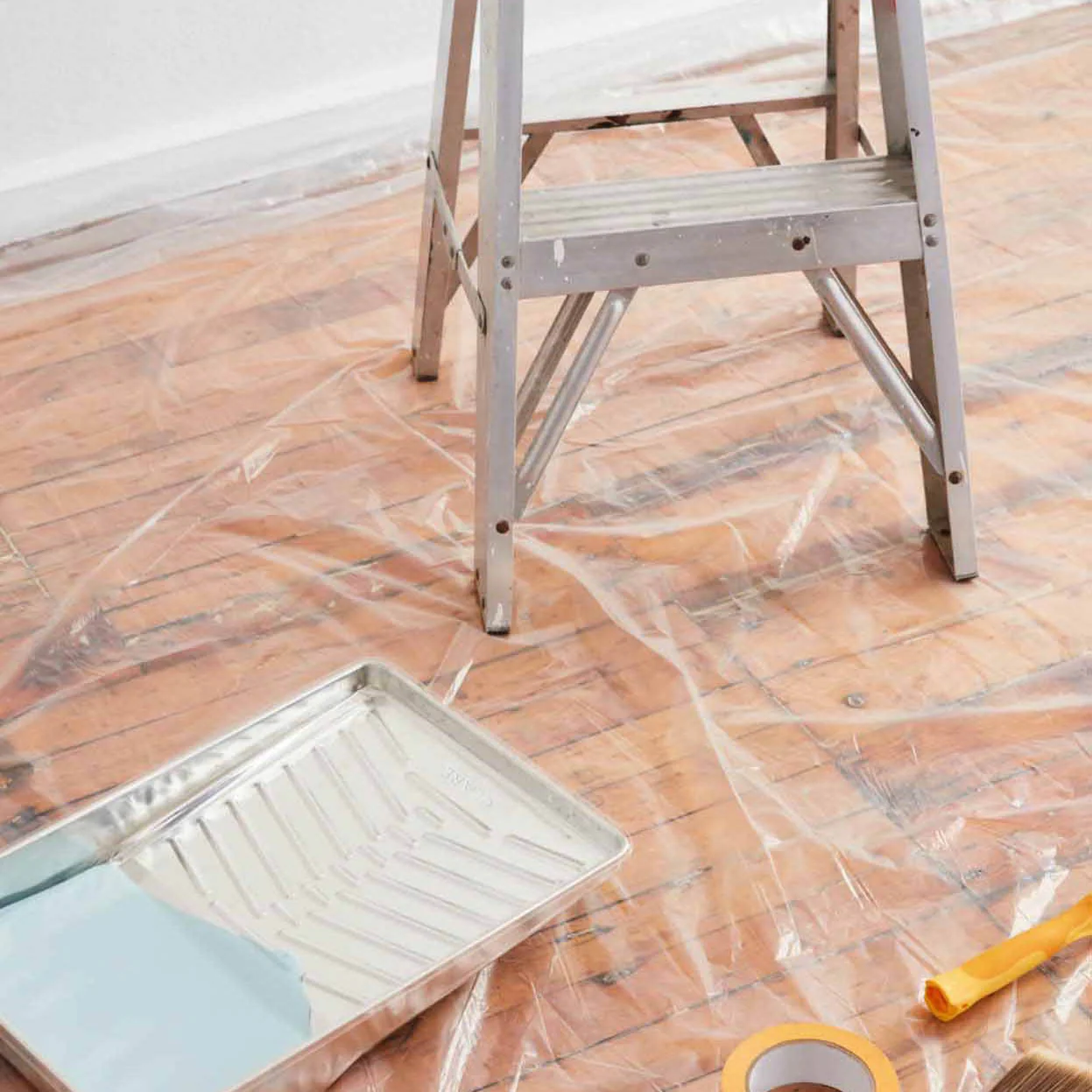 Made of durable, leak-proof plastic, our painter’s drop cloth protects your floors and furniture from paint spills and drips.